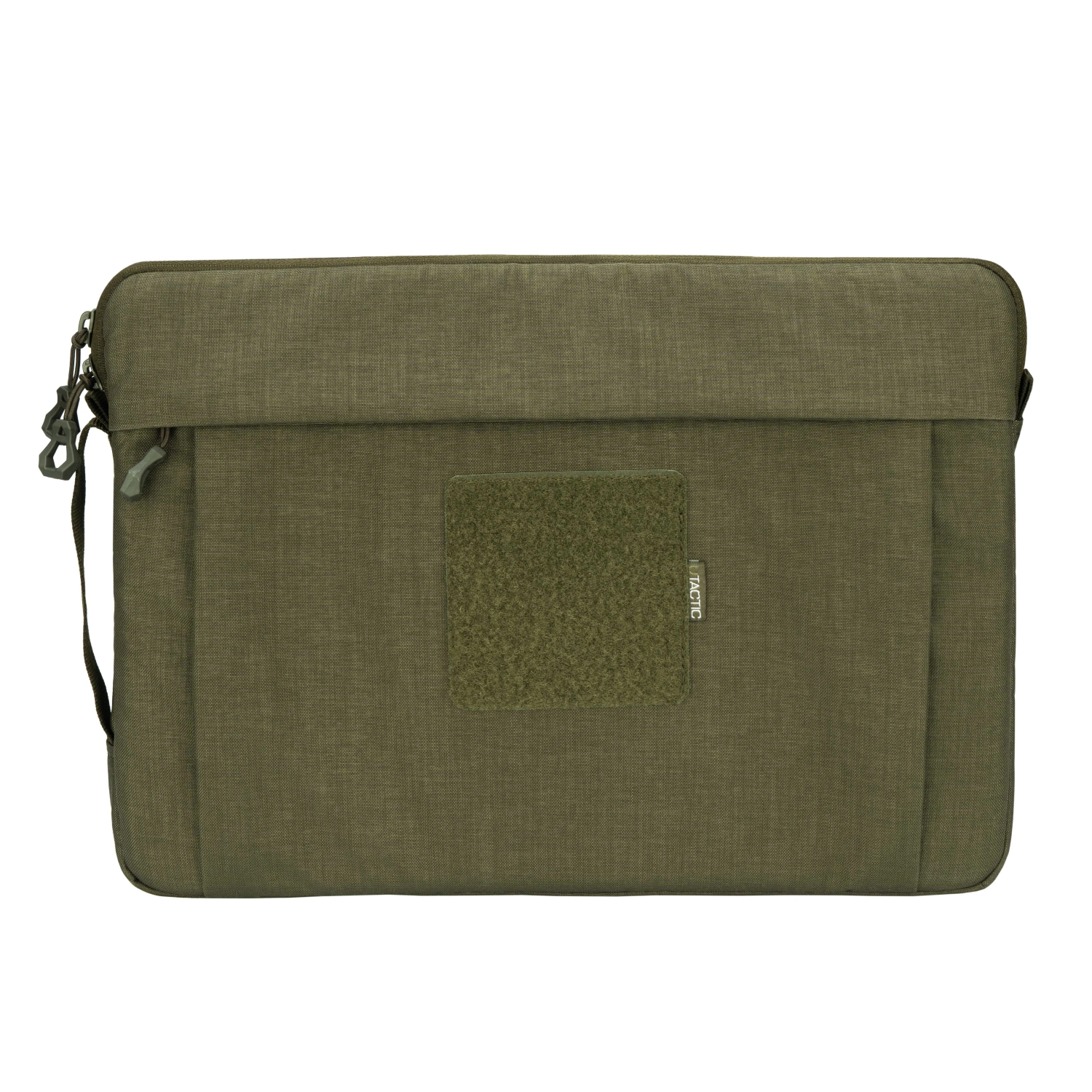 The pouch has a central compartment for the device and an additional external pocket for cables, memory cards, and other small items. All the walls of the pouch have soft damping inserts that protect the laptop inside from external mechanical impacts (bumps, falls, etc.).